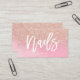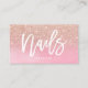 An elegant modern, stylish nails business card with elegant script hand lettering style typography in white on a faux rose gold pink glitter ombre on modern hand painted pastel pink watercolor. If you need any customisation, don't hesitate in contacting me.