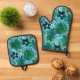 Nalani Hawaiian Tropical Garden Teal Green Oven Mitt & Pot Holder Set
