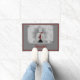 Welcome guests to your home with a Zen Namaste customized doormat for your outdoor decor. Beautiful Gray Buddha with Monk in red and black balancing rocks. "Namaste" (a respectful greeting of the divine) can be personalized with any name, message, quote or anything you desire.