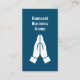 Namasté hands together logo business card template. Custom colour visit cards for your company. Respectful greeting symbol with custom text. Great for spiritual groups, yoga teacher, meditation services, spa salon, massage parlour, mindfulness leader, life coach and much more. Blue or custom colour background. Watermark background logo can be changed into any colour too. Modern icon.