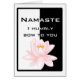 A balanced black and white graphic design with a pink lotus flower inside and the words Namaste, I humbly bow to you. Namaste is what one says when encountering another human being; with prayers hands and a bow, we bow to the spirit we share inside all of us.