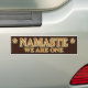 Bumper Sticker that says in 3D Orange colouring Namaste We Are One on a dark background.