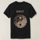 I give wanted to give this a 4 instead of a 5 because these Basic DARK T0shirts run unexpectedly SLIM or Narrow. Which is great if you do not have a potbelly, but I have a paunch. It isn't the shirt's fault that I've got a beer belly. The design and shirt itself is a quality cotton shirt. The color is more of a deep purple, but still a very pretty color. The Basic DARK T-shirts run a bit SLIMMER than the Basic Ts. The neck is a fraction narrower (or seems to be narrower) also. I'm a paunchy middle-aged woman and my neck is 12 inches (31cm) thick and the neckline fell about the same as in the photo of the man, and I had the desire to tug it a bit. So if you're a thick necked man or like loose shirts, be aware these are slimmer shirts. Once I get rid of my lockdown paunch it'll look great. The shirt washed well in cold water with no apparent bleeding. We don't have a dryer, so it hung dry. Did not shrink. Love the colors and the design. The design looks smaller on my shirt than it does on the model on-line. But still, it looks good on the shirt. The printing looks as it does on the model, just the size seems fractionally smaller. Washed garment in cold water, hung dry and design appeared unaffected.
