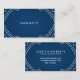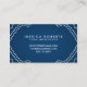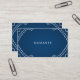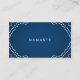These yoga instructor business cards have a simple, minimal design that says Namaste in white on a navy blue background. A geometric design creates a cool white border.