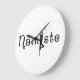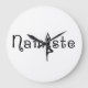 A drawing of a person doing a yoga pose in between the word "Namaste"