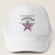 This classic white Trucker Hat features a star cutout with a pattern of red and blue stripes and various size white stars, with black text in various fonts and sizes. Easily change or remove the diagonal name using the Template provided. (To edit and change/remove font style-color-size and more-- use the Design Tool.) Choose from 12 solid and combination colors and other style hats, including the popular bucket hat. 100% nylon mesh back keeps you cool. Adjustable from 17" to 24". See "About" for more information and care. Happy Birthday America, 1776-2026, 250 Years Freedom. Star