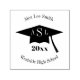 A graduation rubber stamp featuring an illustration of a graduation cap. Personalise the name, school, monogram and year.