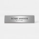 This professional desk name plate features a modern silver background with a clean and refined look.