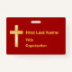 This modern two-sided name badge with scarlet background is perfect for special events, conferences, meetings, and presentations. ***Please note gold colour is not metallic.*** The cross is a central symbol of the Christian faith. This symbol also serves as a reminder of Christian religious beliefs and spiritual devotion. Customise with your special text and choice of lanyard, metal clip or retractable. Dimensions: 3.38" x 2.13", made of PVC Plastic, durable, won't fade or tear.
