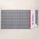 Modern beach towel design features black & white buffalo check pattern with black script name (or text) framed in red and white. Easily change the name-text to make it yours using the Template provided. Awesome personalised gift for newlyweds, graduate, family reunion, pool party hostess, honeymoon gift. Material: front is a polyester blend, back is 100% cotton. Sublimation printing allows for vibrant printing designed to last. Machine washable, tumble dry on low. See "About This Product" at side for more information.