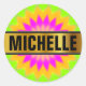 Name + Blurry Vibrant Bursting Flower-Like Pattern Classic Round Sticker