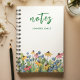 Bright colourful watercolor wildflowers border, 'notes' title in modern calligraphy lettering and name are featured on this spiral notebook, journal, planner. Change the forest green title and name using the simple Template provided. This notebook contains 80 pages, college lined in black and measures 6.5" x 8.75". See "About This Product" for more information. HIGH reviews.