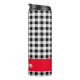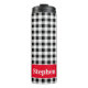 Stylish 12oz thermal tumbler featuring a black & white buffalo check pattern and red accent frame for you to personalise. . Change text to make it yours using the simple Template provided. Stainless body, plastic lid. Vacuum-sealed double walled construction retains temperature, hot or cold. Awesome gift for family, friends, actually-- anyone. See "About This Product" at side for more information and care.