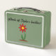 You can change the name and all the text on this funky metal lunchbox. Cute flower design.