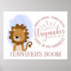 Introducing our charming and customisable nursery wall poster, perfect for Christian-inspired decor. This delightful design features an adorable baby lion paired with an uplifting Bible quote, creating a meaningful and heartwarming composition. The cute baby lion symbolises innocence, gentleness, and the wonder of God's creation. It serves as a precious reminder of the love and joy found in Christian nurseries. Below the endearing graphic, there is space to add a customised name followed by the word "Room." Whether it's "Jennifer's Room" or any other name you choose, this personalisation adds a special touch, making it a cherished addition to any child's space. Embrace the beauty of Christian nursery decor with our customisable baby lion wall poster. Create a captivating and meaningful space that reflects the love and faith woven into every corner of a child's room.