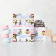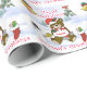 Christmas series Fun Christmas wrapping paper - with room for the giftee's name on the muff of a cute teddy bear who is all wrapped up warm against the Christmas snow. Bells and a wreath, mistletoe, a snowman and a Christmas stocking stuffed with goodies complete the scene. Perfect for wrapping those Christmas gifts for someone very special!