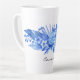 Name, Cobalt Blue Tropical Flowers & Leaves Latte Mug