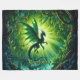 Name, Fantasy Dragon Flying in Green Light Rays Fleece Blanket