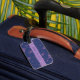 A lovely and one of a kind luggage tag in a floral blue and mauve motif, ready to be customised with your name on the front and phone number on the back.