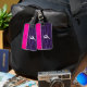 Name gymnast purple glitter zebra stripes luggage tag