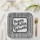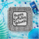 Name Happy Birthday Black White Stripes Pattern Paper Plate