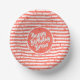 Name | Happy Birthday Coral Simple Stripes Pattern Paper Plate