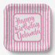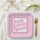Name Happy Birthday Pink Simple Stripes Pattern Paper Plate