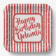 Name Happy Birthday Red Simple Stripes Pattern Paper Plate