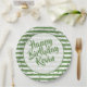 Name | Happy Birthday Simple Stripes Pattern Green Paper Plate