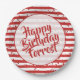 Name | Happy Birthday Simple Stripes Pattern Red Paper Plate