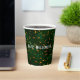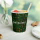 A colourful orange and green crescent moons and tiny stars bokeh pattern background with a "Happy Halloween" greeting on front and name on back decorate these elegant paper cups. Easily change the white text to make it yours, using the Template provided. Dimensions are 3.75"h x 3"d, The cup is 8oz capacity and ideal for cold and warm beverages. Add a lid for a small charge (I think it is worth adding lids). See "About This Product" at side for more information. Printed in USA.