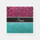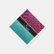 Modern, chic, girly and trendy Neon hot pink glitter leopard animal print pattern background and bright aqua / turquoise glitter (not real glitter) pretty black diamonds stripe (faux diamonds, not real) with hearts and dots personalised with your name gifts or monogram gifts or your initials. Ideal for weddings, birthdays, and much more featuring an elegant and traditional fancy lettering