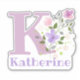 Personalise any item with a Name and Initial with Floral Design Cut-Out Sticker. Example name is Katherine.