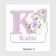 Personalise any item with a Name and Initial with Floral Design Cut-Out Sticker. Example name is Katie.