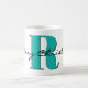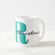 Merry Christmas in elegant black script, a large initial in March birthstone blue aquamarine, and name in a simple modern font decorate this bold 11oz classic coffee mug. Large capacity for hot or cold beverages. Easily change the initial, text and name to make it yours using the Template provided. . Ideal for family Christmas morning coffee or celebrating throughout the winter holidays. Also available in 15oz and many other mug styles. See "About This Product" for more information. Special pricing.