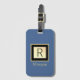 Name & Monogram, Black & Gold Box, Med Blue Luggage Tag