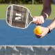 This simple, minimalist pickleball paddle makes the perfect gift for yourself or anyone special. It features a rustic wood background with bold serif initial monogram and a script name elegantly displayed below. White stripes add a sporty touch, giving the paddle a clean, timeless look. The font colours and stripes can be customised to match your style, allowing you to create a unique design that stands out on the court. Ideal for personal use or as a thoughtful gift, this pickleball paddle combines functionality with a rustic charm, making it a standout piece for any player. Elegant Simple Monogram Pickleball Paddle Personalised With Initial And Name Rustic Wood Background