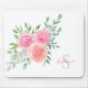This monogrammed mouse pad features watercolor flowers and foliage in shades of pink, coral, and green.