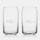 These can style glasses features a dark grey scripted surname over a light grey monogram.