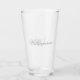 This glass features a dark grey scripted surname over a light grey monogram.