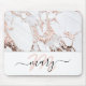 Name Monogram Marble Rose Pink White Abstract Mouse Mat