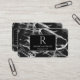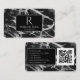 Name & Monogram, QR Code, Black & Grey Marble Business Card