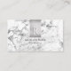 Name & Monogram, QR code, White & Grey Marble Business Card