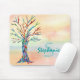 This rustic mouse pad is decorated with a mosaic tree in rainbow colours on a watercolor background.