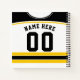 This design is an ice hockey / lacrosse style jersey with black and gold stripes and trim, the background colour can be changed, just click CUSTOMIZE.
