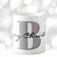 Merry Christmas in elegant black script, a large initial in October birthstone - grey opal, and name in a simple font decorate this masculine 11oz classic coffee mug. Large capacity for hot or cold beverages. Easily change the initial, text and name to make it yours using the Template provided. Ideal for family Christmas morning coffee or celebrating throughout the winter holidays. Also available in 15oz and many other mug styles. See "About This Product" for more information. Special pricing.