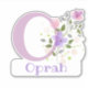 Personalise any item with a Name and Initial with Floral Design Cut-Out Sticker. Example name is Oprah.