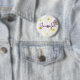 This button features a purple name in a modern scripted font over a graphic of a scattering of daisy like flowers in pale cream and dark lavender purple.