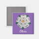 Intricate paper quilled Yorkshire White Rose symbol and white script name are featured on this 2" (5cm) square magnet with an amethyst colour background. Easily change name to make it yours using the Template provided. Ideal as a small gift, company or business, party favours, Yorkshire Day, and more thoughtful ways of giving. Printed on 100% recycled paper. Covered with scratch and UV-resistant Mylar. See "About This Product" at side for more information. Paper quilled Yorkshire White Rose symbol, ©2021 Molly Smith in Wakefield, West Yorkshire, UK.