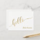 Modern lettered in gold "hello" typography postcard with a name personalized design. If you need assistance with placement or personalization, please use the "Contact This Designer" link on the right hand side of this page.